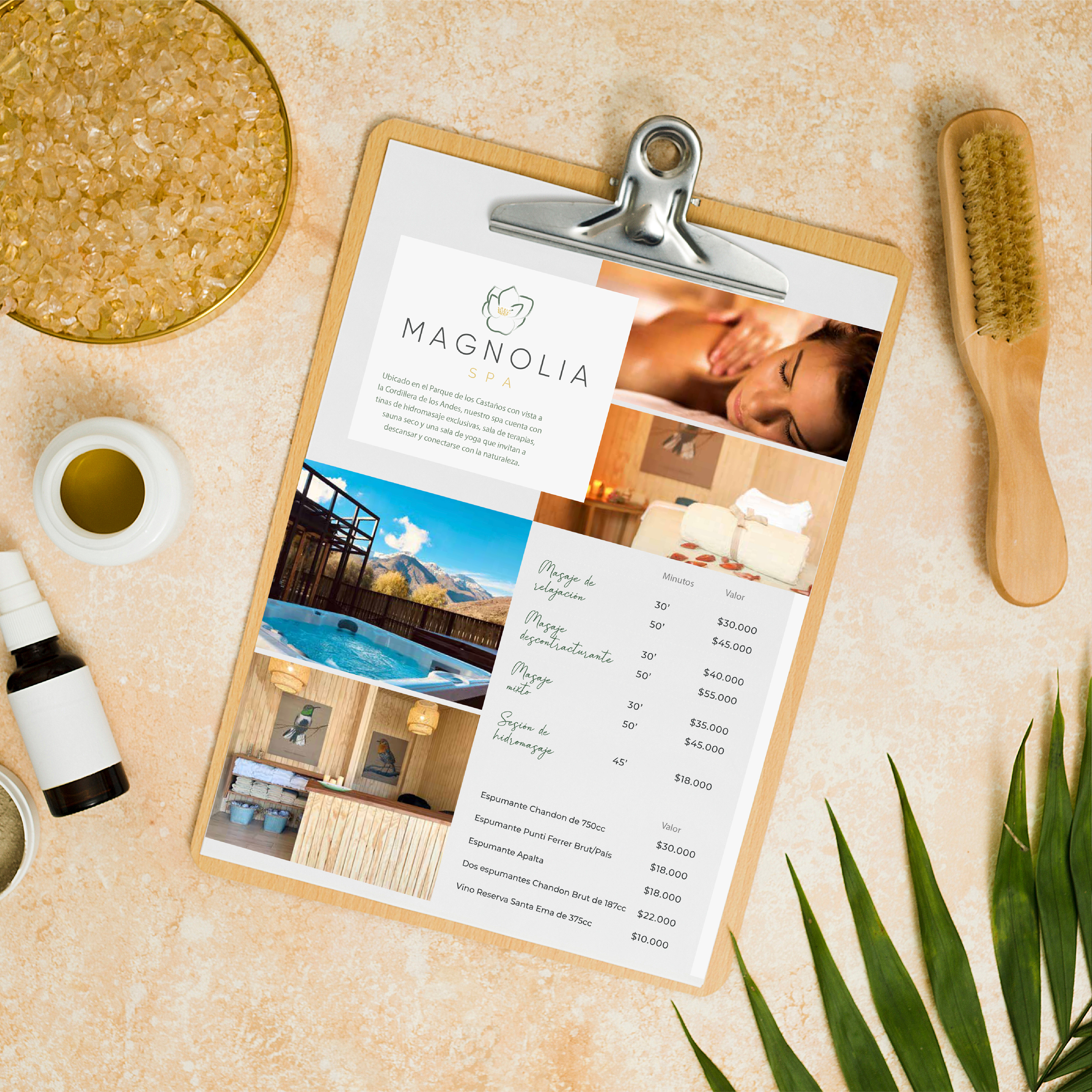 Diseño Logotipo e identidad Spa Magnolia de Leonera Hotel. Trabajo realizado junto al equipo Dos Líneas Diseño el año 2020